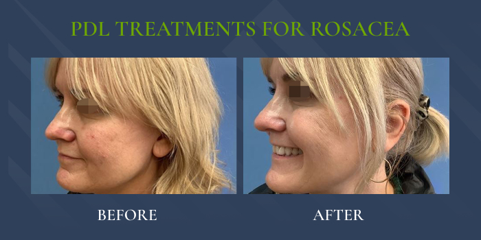 The VBeam uses PDL technology to deliver an intense but gentle burst of light into targeted areas of the skin. This light is absorbed by the blood vessels or pigmentation in the skin, causing them to collapse and fade away, reducing the appearance of rosacea.